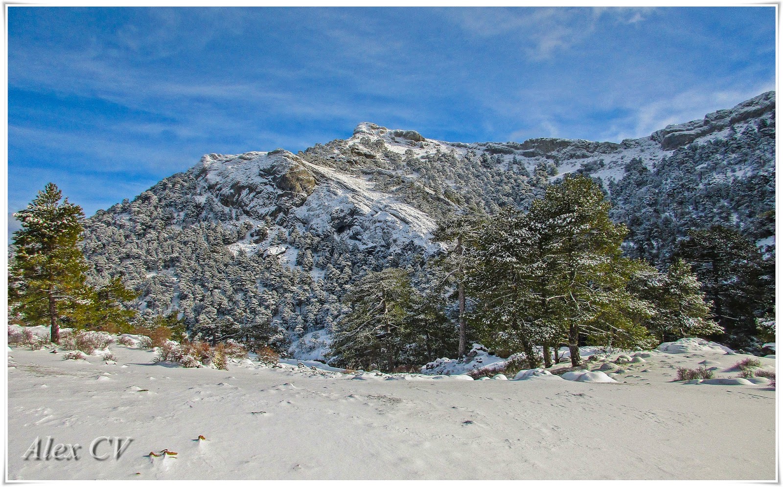 Ante ésta ola de frío siberiano (aunque al menos en ésta zona no creo que sea algo anormal para la época del año en la que estamos), y con las nevadas que han caído en casi todas las sierras béticas, Juan Antonio y yo decidimos a la hora de elegir una ruta no aventurarnos demasiado con el coche por pistas forestales que recorren el corazón de éstas serranías y siendo bastantes conservadores, descartamos realizar una ruta por la que camináramos por terrenos escarpados, fuera de caminos o senderos bien definidos. Era una oportunidad ideal para pisar nieve virgen, reciente, en polvo, de esa que es un placer pisar. Creo que dimos de lleno y acertamos con el recorrido.